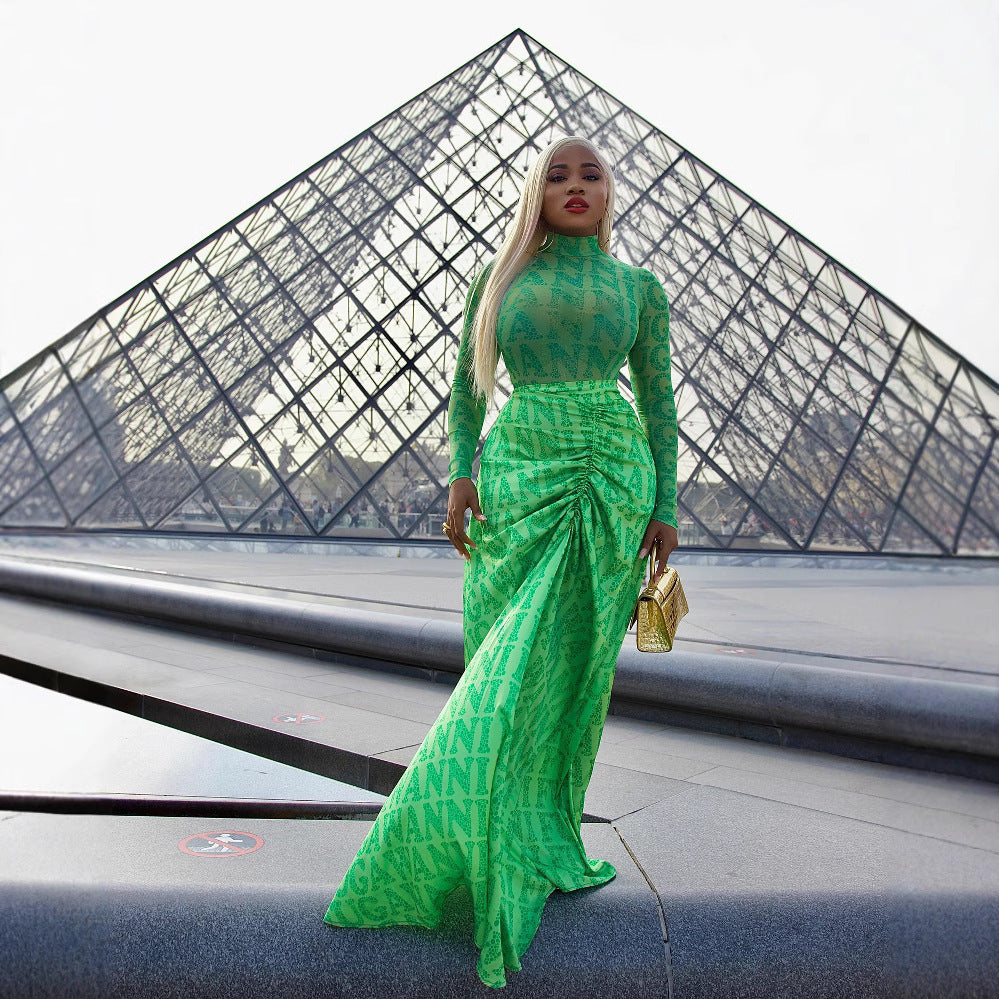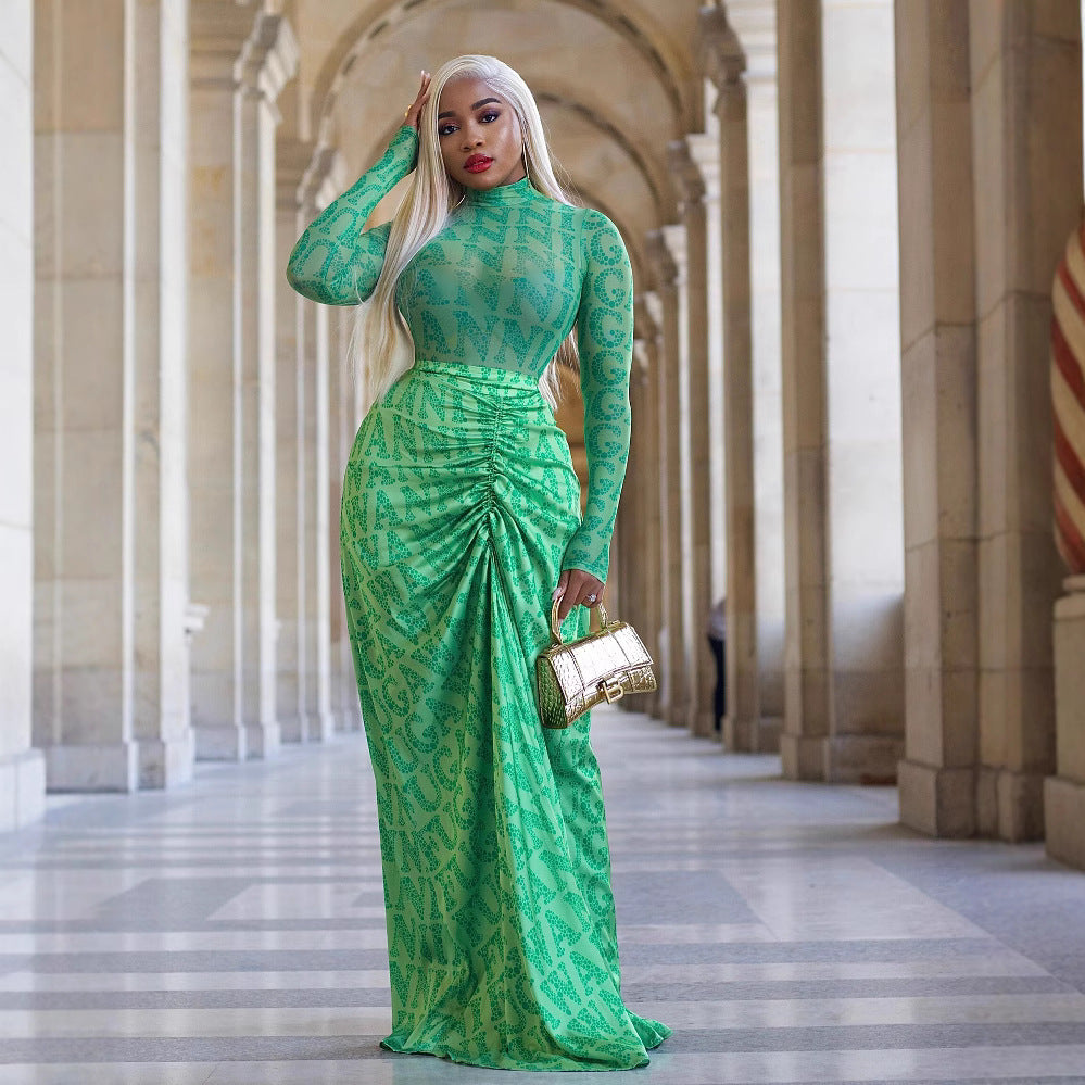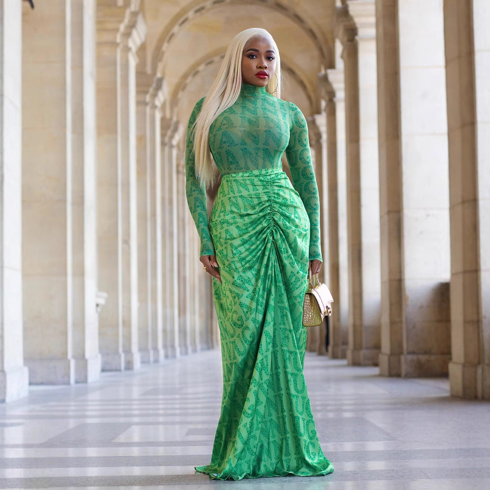 Women's Pleating Slim Fit Long Dress Two-piece Suit